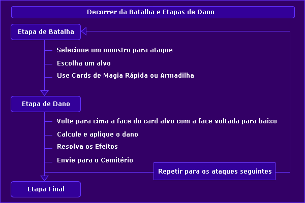 Uma vez terminada a Etapa de Dano, retorna-se à Etapa de Batalha se o jogador atacante desejar usar outro monstro para atacar novamente.